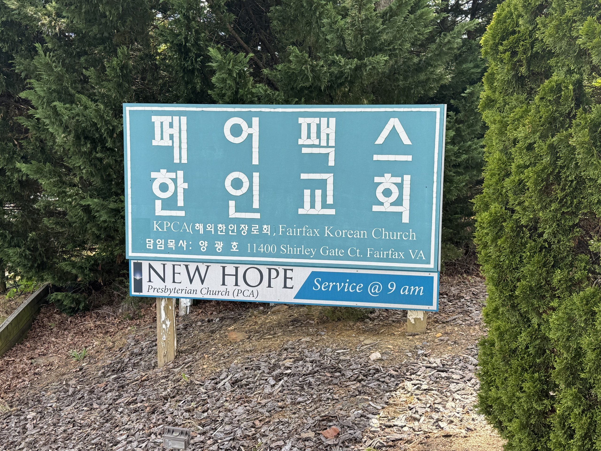 New Hope meets at 11400 Shirley Gate Court, Fairfax, Virginia, 22030, where we share a building with Fairfax Korean Church.